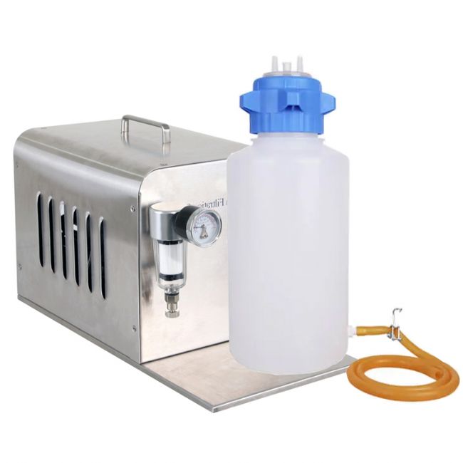 一臺(tái)完整的實(shí)驗(yàn)室液體抽取吸引泵主要包括負(fù)壓真空泵主機(jī)、真空泵管、真空集液瓶和吸液連接管,部分中高端產(chǎn)品還會(huì)額外配置防倒吸保護(hù)器材,以避免意外情況發(fā)生液體抽入真空泵造成的故障。由于需要接觸各種不同的溶液或溶劑,在日常使用過程中,吸液用的真空泵會(huì)需要進(jìn)行清潔、消毒,下面我們以Sciencetool圣斯特品牌的DTVS-204P4型號(hào)液體抽吸真空泵為例,為用戶提供部分日產(chǎn)清潔消毒的建議: