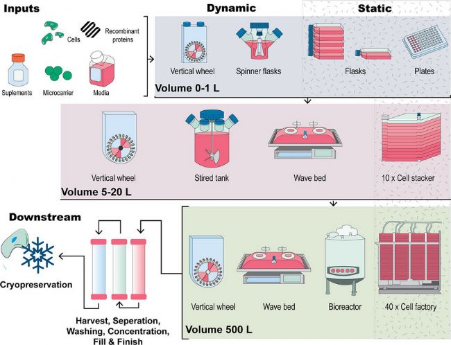 細(xì)胞培養(yǎng)是影響大部分疫苗產(chǎn)能的主要因素,細(xì)胞培養(yǎng)的規(guī)模影響擴(kuò)增規(guī)模,細(xì)胞培養(yǎng)有動(dòng)態(tài)培養(yǎng)和靜態(tài)培養(yǎng)兩類方案,均需要利用