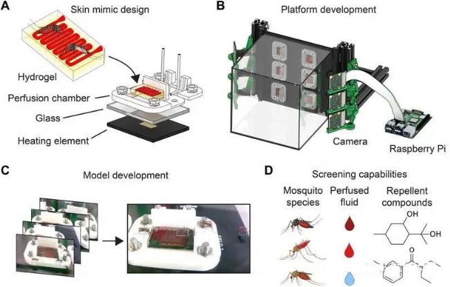 圖片展示了一種用于篩選驅(qū)蟲劑的平臺的開發(fā)。