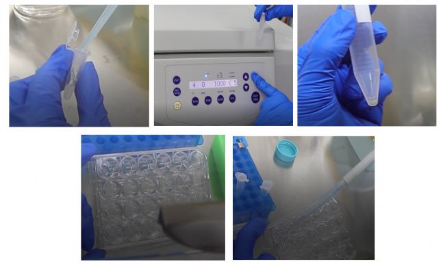 1、類器官數(shù)量不足或體積較小時:300g 4℃ 離心 5min 棄去上清,添加1ml類器官傳代培養(yǎng)緩沖液 G重懸移入 1.5ml 離心管,300g4℃ 離心 5min(如圖5)棄去液體進行第3步。