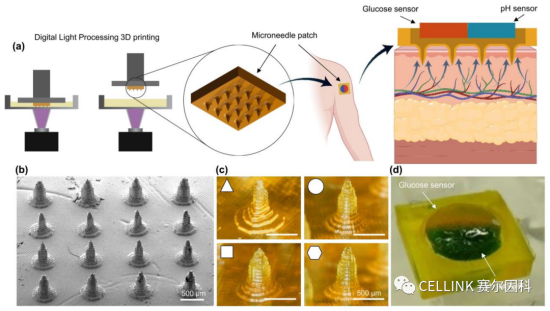 通過數(shù)字光處理生物打印方法制造微針陣列,我們可以為多重透皮代謝物檢測提供創(chuàng)新的解決方案。這項技術(shù)具有制造復(fù)雜結(jié)構(gòu)、高分辨率和制造靈活性的優(yōu)勢,為連續(xù)監(jiān)測提供了可行性,并為安全和長期的慢性疾病管理提供了新的前景。