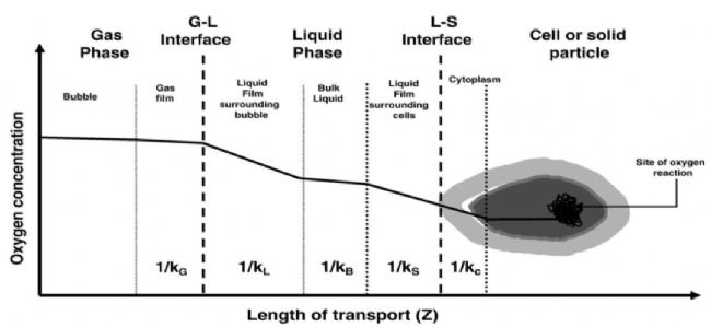 圖1 氧氣在氣相-液相-細(xì)胞內(nèi)的傳遞過程