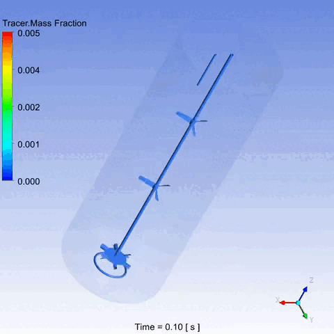 圖2 示蹤劑在反應(yīng)器中的混合過程