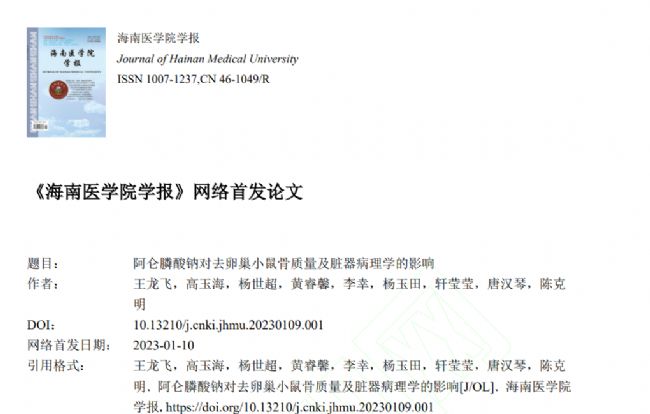 探究阿侖膦酸鈉對去卵巢小鼠骨質(zhì)量和臟器病理學(xué)的影響