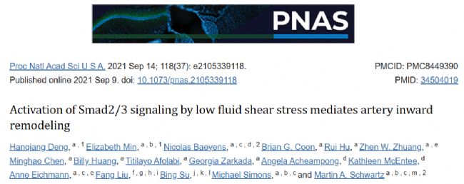 參考文獻:Deng H, Min E, Baeyens N, Coon BG, Hu R, Zhuang ZW, Chen M, Huang B, Afolabi T, Zarkada G, Acheampong A, McEntee K, Eichmann A, Liu F, Su B, Simons M, Schwartz MA. Activation of Smad2/3 signaling by low fluid shear stress mediates artery inward remodeling. Proc Natl Acad Sci U S A. 2021 Sep 14;118(37):e2105339118. doi: 10.1073/pnas.2105339118. PMID: 34504019; PMCID: PMC8449390.