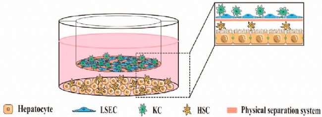 圖3 間接3D細胞共培養(yǎng)肝臟模型的示例。