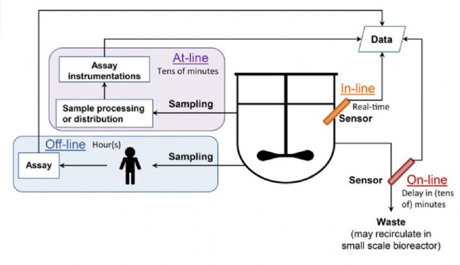 PAT包括能夠測量物理和化學(xué)過程參數(shù)以及關(guān)鍵屬性的分析儀器,其目標(biāo)是優(yōu)化過程控制。作為探頭或傳感器形式的PAT被設(shè)計成與生物工藝過程集成,并與計算設(shè)備相連,以化學(xué)計量建模來解釋結(jié)果,并對過程進(jìn)行多層次統(tǒng)計控制。PAT解決方案旨在理解生物過程,并在產(chǎn)品制造的各個階段實(shí)現(xiàn)QbD。PAT實(shí)施的目標(biāo)是促進(jìn)產(chǎn)品的實(shí)時釋放,以減少生產(chǎn)周期和成本。