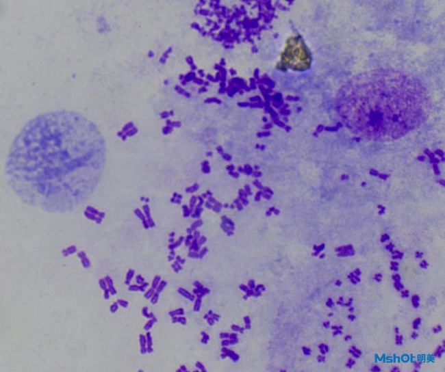 其次還可以使用熒光染料對(duì)染色體進(jìn)行染色,通過(guò)熒光顯微鏡對(duì)其進(jìn)行熒光觀察,通過(guò)熒光信號(hào)點(diǎn),確定染色體是否正常
