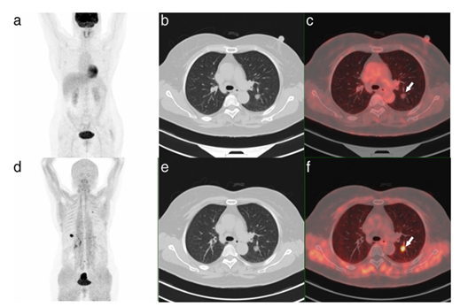 圖3:[18F]FDG和Al18F-FAPI在女性肺癌患者的PET/CT