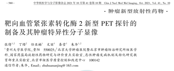 論文發(fā)表 | 靶向血管緊張素轉(zhuǎn)化酶2新型PET探針的制備及其腫瘤特異性分子顯像