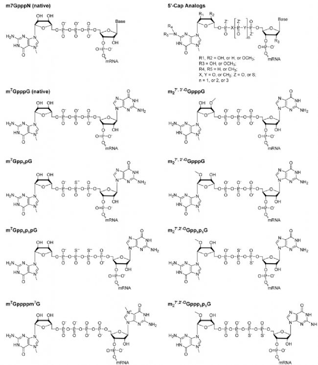 圖2 已用于表達(dá)蛋白質(zhì)的5'-帽類似物