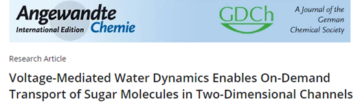 目前人工仿生通道中的可控傳輸依賴于運(yùn)輸物質(zhì)與通道之間的靜電或特異性吸附作用。然而,與通道相互作用較弱的中性小分子(例如葡萄糖)在人工孔道中精確的輸運(yùn)調(diào)控仍然是一個(gè)重大挑戰(zhàn)。上海交通大學(xué)楊曉偉與同濟(jì)大學(xué)趙曉莉采用具有亞納米通道的層狀二維過渡金屬碳化物膜,實(shí)現(xiàn)了葡萄糖的電壓門控選擇性輸運(yùn)。該工作以“Voltage-Mediated Water Dynamics Enables On-DemandTransport of Sugar Molecules in Two-Dimensional Channels”為題,與2023年7月11日在線發(fā)表在Angewwandte Chemie International Edition上。