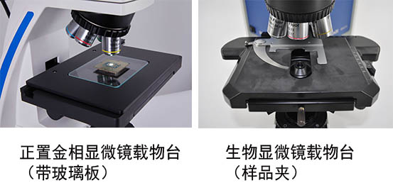 (1)載物臺金相顯微鏡對樣品尺寸形式并無嚴(yán)格規(guī)定,如果是透反射照明,載物臺中間通常放置一塊透明玻璃,可以隨意放置微小固體樣本進(jìn)行觀測;生物顯微鏡一般是使用樣品夾對樣本玻片進(jìn)行支撐固定,載物臺中間一般是鏤空的,以便實現(xiàn)油浸物鏡高倍觀察。
