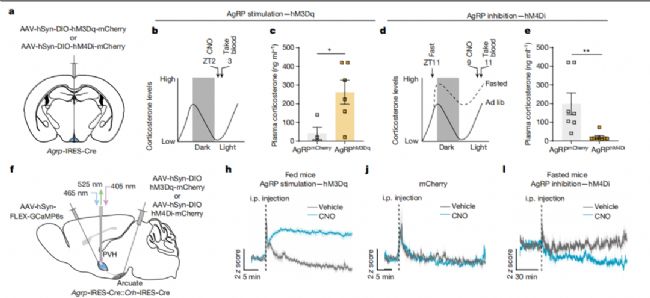 圖2:AgRP-PVH-Crh神經(jīng)元環(huán)路激活HPA軸