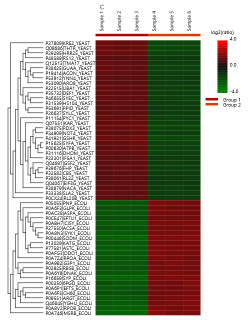 PEAKS LFQ的結(jié)果視圖旨在讓人輕松看到從一組到另外一組蛋白質(zhì)發(fā)生的顯著的變化。 因此,并不是所有的蛋白質(zhì)都顯示在默認(rèn)結(jié)果中。不過,只需更改參數(shù)設(shè)置中的Q部分過濾參數(shù),遞交任務(wù)可快速重新整合結(jié)果,輕松查看所有定量的蛋白質(zhì)。
