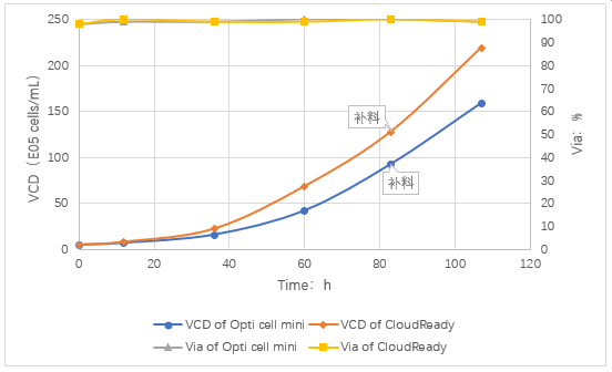 圖6. 培養(yǎng)過程中細(xì)胞密度(VCD)和活率(Via)變化曲線