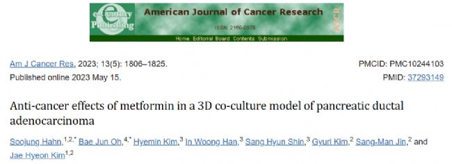 參考文獻(xiàn):Hahn S, Oh BJ, Kim H, Han IW, Shin SH, Kim G, Jin SM, Kim JH. Anti-cancer effects of metformin in a 3D co-culture model of pancreatic ductal adenocarcinoma. Am J Cancer Res. 2023 May 15;13(5):1806-1825. PMID: 37293149; PMCID: PMC10244103.