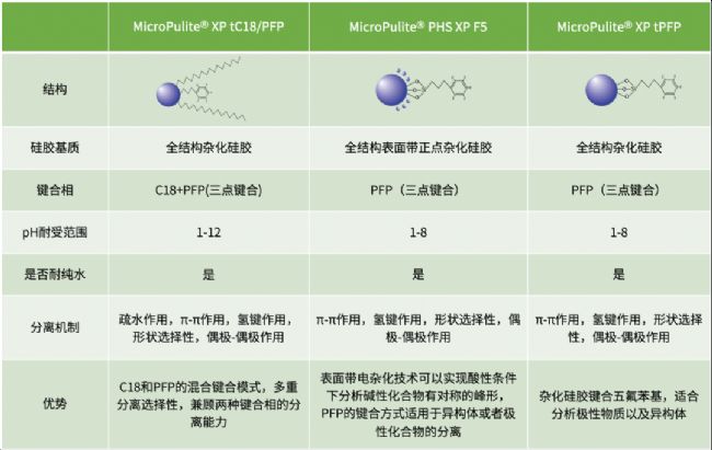 三款色譜柱分別有如下特點:
