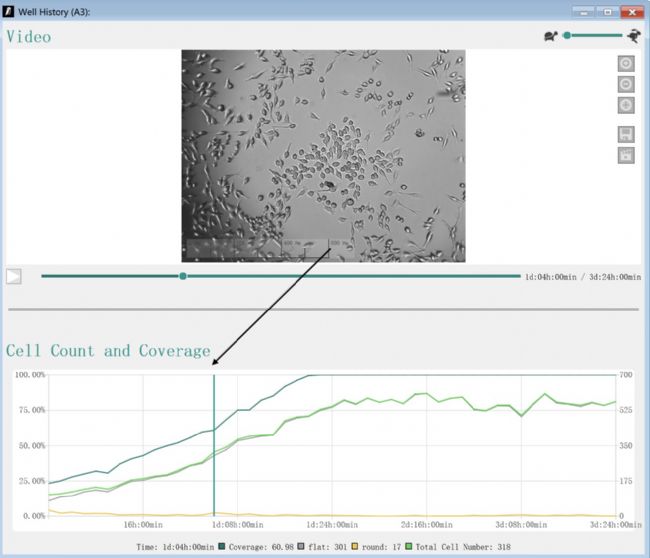 2、整個(gè)實(shí)驗(yàn)結(jié)果數(shù)據(jù)豐富,每孔的細(xì)胞均產(chǎn)生49個(gè)時(shí)間點(diǎn)圖片,軟件分析每個(gè)監(jiān)測(cè)點(diǎn)的細(xì)胞計(jì)數(shù)原始數(shù)據(jù)(CSV格式)、細(xì)胞匯合度、自動(dòng)繪制細(xì)胞生長(zhǎng)匯合度曲線(xiàn),并可導(dǎo)出細(xì)胞生長(zhǎng)的動(dòng)態(tài)視頻。