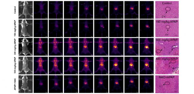 本文要點:幾十年來,過量服用對乙酰氨基酚(APAP)一直是急性肝功能衰竭(acute liver failure, ALF)的主要原因。目前,APAP誘導(dǎo)的肝毒性的發(fā)病機制仍有待完全闡明。短波紅外光譜區(qū)(shortwave infrared spectral region, SWIR)功能性體內(nèi)成像在疾病診斷、熒光引導(dǎo)手術(shù)和體內(nèi)藥理學(xué)方面具有廣泛的潛力。因此,用于體內(nèi)血管系統(tǒng)氧化應(yīng)激的SWIR熒光探針可以為APAP毒性的發(fā)病機制提供一個獨特的視角。