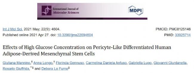 參考文獻(xiàn):Mannino G, Longo A, Gennuso F, Anfuso CD, Lupo G, Giurdanella G, Giuffrida R, Lo Furno D. Effects of High Glucose Concentration on Pericyte-Like Differentiated Human Adipose-Derived Mesenchymal Stem Cells. Int J Mol Sci. 2021 Apr 27;22(9):4604. doi: 10.3390/ijms22094604. PMID: 33925714; PMCID: PMC8125146.