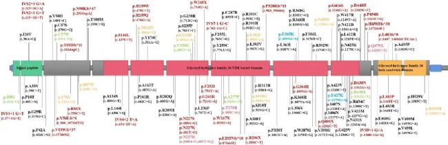 本研究在中國帕金森病及運動障礙疾病多中心數(shù)據(jù)庫及協(xié)作網(wǎng)(PD-MDCNC)基礎(chǔ)上,應(yīng)用全外顯子組測序或全基因組測序?qū)D-MDCNC數(shù)據(jù)庫中4031例PD患者和2931例健康對照進行了GBA1基因的變異分析,最終鑒定了GBA1基因104個非同義變異,其中8個新變異(p.R8G、p.C57W、p.N227R、p.V230G、p.T270R、p.A277P、p.D438Y、p.Q479X)為國際首次報道;除p.L483P風(fēng)險位點外,還發(fā)現(xiàn)p.G241R、p.S310G是中國PD人群新的風(fēng)險位點;在中國PD人群中,GBA1基因變異發(fā)生率為7.46%;并系統(tǒng)繪制了中國PD人群GBA1基因變異譜。