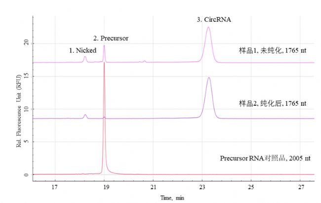 方法可準確反映不同純化程度樣品中CircRNA的純度變化,以高效評價CircRNA疫苗的環(huán)化效率、純化工藝、產(chǎn)品質(zhì)量等。該方案可更快速地評估樣品性質(zhì),加快產(chǎn)品從研發(fā)到上市的時間。