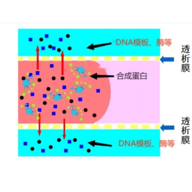 無(wú)細(xì)胞蛋白表達(dá):常規(guī)的無(wú)細(xì)胞蛋白表達(dá)反應(yīng),模板DNA、細(xì)胞提取液和其他組分混合放入透析管內(nèi),并放入特定成分的緩沖液。緩沖液中小分子包括氨基酸、核苷酸、ATP與其他因子會(huì)與透析管內(nèi)的成分進(jìn)行交換,持續(xù)提高反應(yīng)物濃度,促進(jìn)和提高蛋白質(zhì)產(chǎn)量。Scienova透析管透析效率顯著減少相關(guān)實(shí)驗(yàn)全程所需時(shí)間;惰性材質(zhì)及密封保證反應(yīng)科學(xué)性。