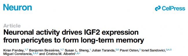 2023年10月3日紐約大學(xué)Cristina M. Alberini研究團(tuán)隊(duì)在Neuron雜志上發(fā)表文章揭示神經(jīng)元活性驅(qū)動(dòng)周細(xì)胞表達(dá)IGF2維持長(zhǎng)期記憶。