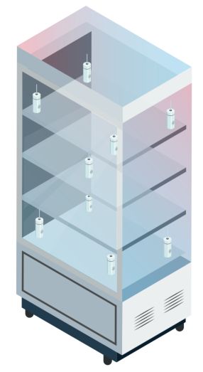 典型設置 :8 個在角落,1 個在中間 *如果適用,請勿忘記在顯示、控制和監(jiān)控探頭旁邊放置附加傳感器。