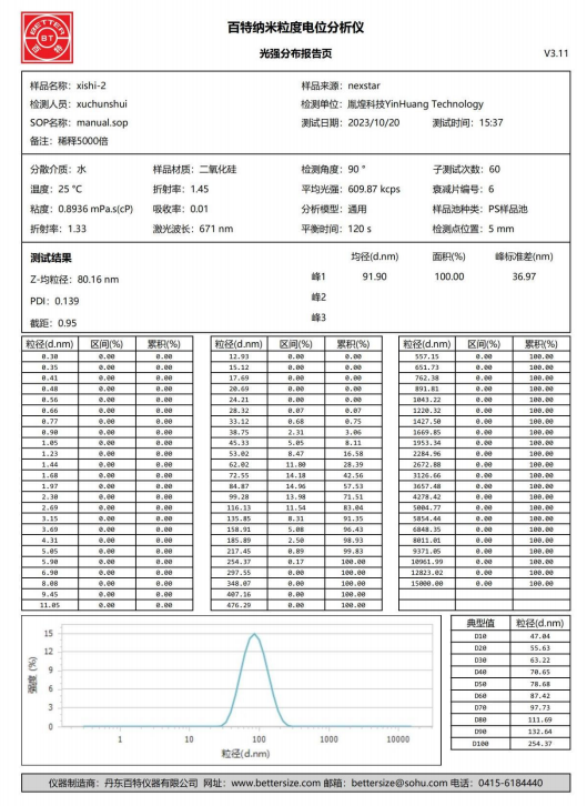 1.使用 PBS 緩沖液稀釋樣品可以顯著降低粒度儀所測得的樣品的粒徑。