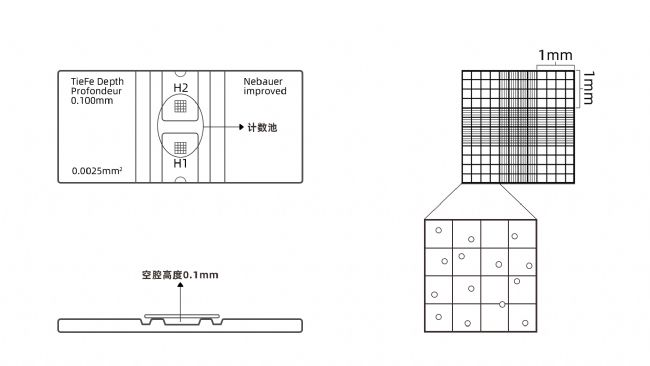 ③一次性細(xì)胞計(jì)數(shù)片的空腔高度設(shè)計(jì)嚴(yán)格標(biāo)定為0.1mm,計(jì)數(shù)體積(0.1mm3)與血細(xì)胞計(jì)數(shù)板一致。