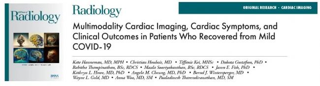 2023年6月,來(lái)自多倫多大學(xué)的科學(xué)家在Radiology 上發(fā)表題為Multimodality Cardiac Imaging, Cardiac Symptoms, and Clinical Outcomes in Patients Who Recovered from Mild COVID-19的文章。該研究評(píng)估了患者在輕度COVID-19感染后的多模態(tài)心臟成像、癥狀和臨床結(jié)果。
