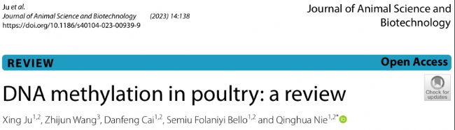 DNA甲基化作為一種重要的表觀遺傳修飾,參與動物細胞分化、胚胎發(fā)育、基因組印記和性染色體失活等生物學過程。隨著DNA甲基化測序變得越來越復雜,用它來解決更多的動物學問題成為可能。2023年11月5日,華南農(nóng)業(yè)大學動物遺傳育種與繁殖系聶慶華教授團隊在《J Anim Sci Biotechnol》(IF:7/1區(qū))雜志發(fā)表綜述,綜述了DNA甲基化特征,重點介紹了DNA甲基化在家禽中的研究與應用。