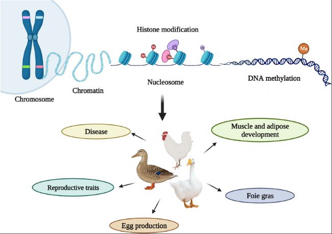 DNA甲基化是連接基因和表型的紐帶,已被廣泛用于確定環(huán)境對家禽生長的影響。同時,DNA甲基化也在鴨子身上進行研究。