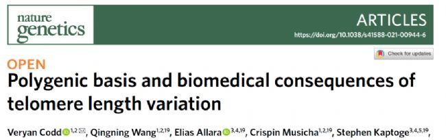 端粒長(zhǎng)度(TL)是可遺傳的,但對(duì)其遺傳決定因素的理解并不完整。由于端粒調(diào)節(jié)基因中的罕見突變,端粒的極端縮短會(huì)導(dǎo)致早衰綜合征。相比之下個(gè)體之間的端粒長(zhǎng)度(TL)差異與某些癌癥、冠心病等以及其他與年齡相關(guān)的常見疾病有關(guān)。