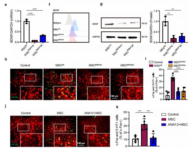 圖3:MSCs通過BDNF-TrkB信號激活DRN腦區(qū)5-HT能神經(jīng)元