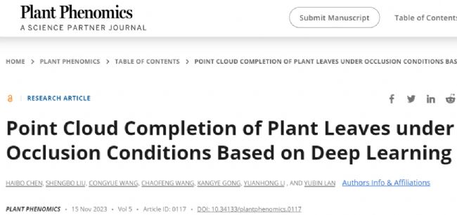 2023年11月,Plant Phenomics 在線發(fā)表了華南農(nóng)業(yè)大學(xué)蘭玉彬團(tuán)隊(duì)題為Point cloud completion of plant leaves under occlusion conditions based on deep learning 的研究論文。研究提出了一種基于深度相機(jī)和深度學(xué)習(xí)點(diǎn)云補(bǔ)全的植物三維重建方法。該方法通過利用深度學(xué)習(xí)這一方法不僅解決了訓(xùn)練數(shù)據(jù)不足的問題,還使得模型能夠有效地處理使用Azure Kinect捕獲的點(diǎn)云數(shù)據(jù)。