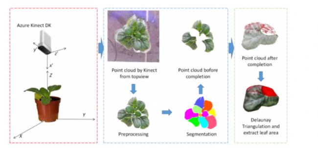 植物的三維重建對(duì)于農(nóng)業(yè)和植物科學(xué)研究非常重要,因?yàn)樗梢詭椭芯咳藛T了解植物的形態(tài)、生長(zhǎng)和發(fā)育情況。然而,深度相機(jī)在采集植物點(diǎn)云數(shù)據(jù)時(shí)常常面臨葉片遮擋和點(diǎn)云數(shù)據(jù)缺失的問題,這使得傳統(tǒng)的重建方法效果有限。因此,研究人員需要開發(fā)新的方法,以克服這些問題,以實(shí)現(xiàn)更準(zhǔn)確和完整的植物三維重建。
