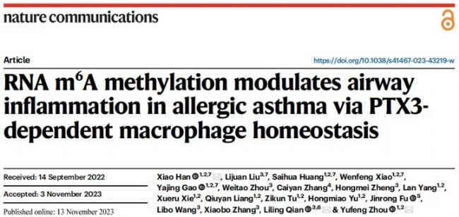 近日,復(fù)旦大學(xué)生物醫(yī)學(xué)研究院/附屬兒科醫(yī)院周玉峰團(tuán)隊(duì)與合作者于期刊Nature Communications發(fā)表題為“RNA m6A Methylation Modulates Airway Inflammation in Allergic Asthma via PTX3-dependent Macrophage Homeostasis”的文章,揭示了m6A修飾通過調(diào)控巨噬細(xì)胞激活和自噬功能參與到過敏性哮喘氣道炎癥發(fā)病進(jìn)程的新機(jī)制。