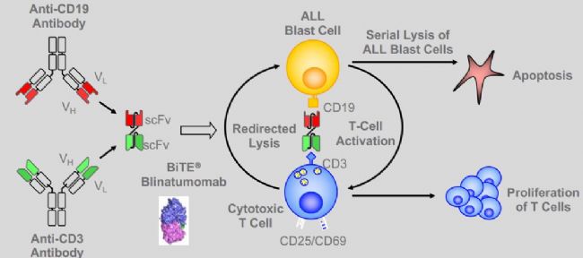博納吐單抗的工作模式,激活T細胞增殖,促進B細胞凋亡