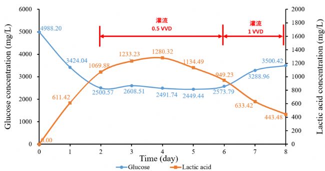 圖6 葡萄糖和乳酸濃度變化曲線