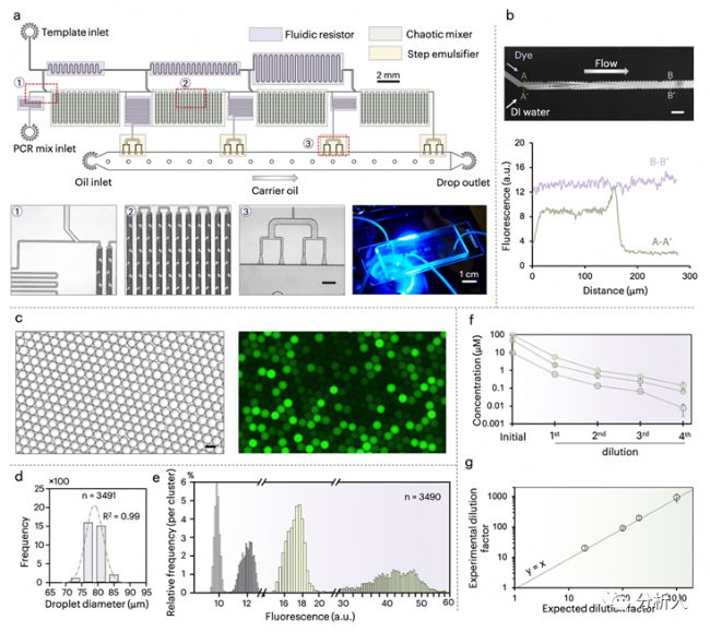 圖 2:Flodd-PCR 芯片設(shè)計(jì)及稀釋性能表征