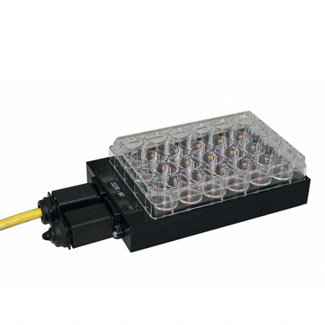 圖 1:用于在線監(jiān)測24孔多培養(yǎng)皿中溶解氧和pH值的SDR SensorDish® Reader