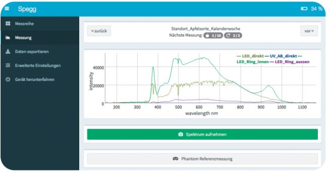 在對新型光譜儀原型機(jī)的研究中發(fā)現(xiàn),從蘋果到收獲期間,散射系數(shù)逐漸減小,并且存在品種差異。 該項(xiàng)目的進(jìn)一步結(jié)果必須在后續(xù)測試中進(jìn)行檢查。 目前,現(xiàn)有的數(shù)據(jù)和分析技術(shù)不足以借助新開發(fā)的光譜儀來預(yù)測zui 佳收獲日期。 然而,KOB 已大大擴(kuò)展了該應(yīng)用的專業(yè)知識,并且通過正在進(jìn)行的工作,有可能小規(guī)模且非破壞性地預(yù)測收獲日期。
