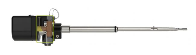 圖 3. Stream 系統(tǒng)樣品桿全貌圖,綠框內(nèi)為手動閥