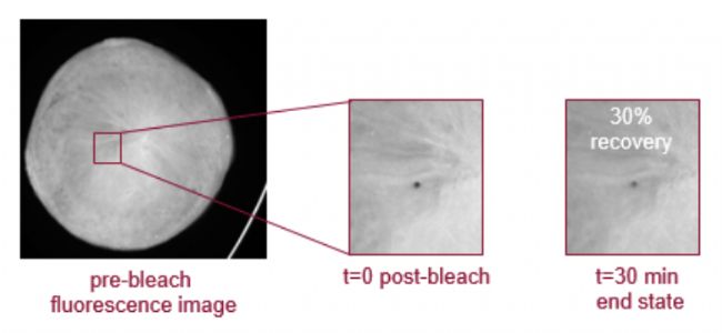 接著處理熒光圖像以確定表明蛋白質遷移率的光漂白點的恢復時間。
