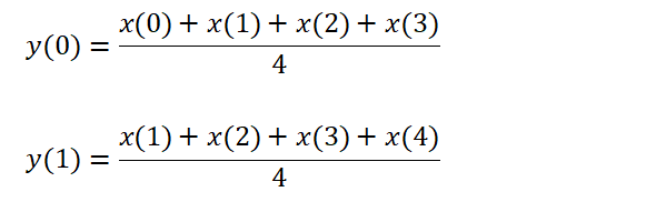 移動平均濾波器是n個連續(xù)信號樣本的平均值。方程為: