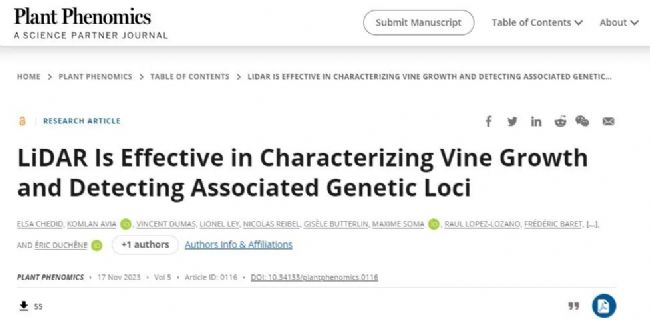 2023年11月,Plant Phenomics 在線發(fā)表了法國 University of Strasbourg等單位題為LiDAR is effective in characterizing vine growth and detecting associated genetic loci 的研究論文。