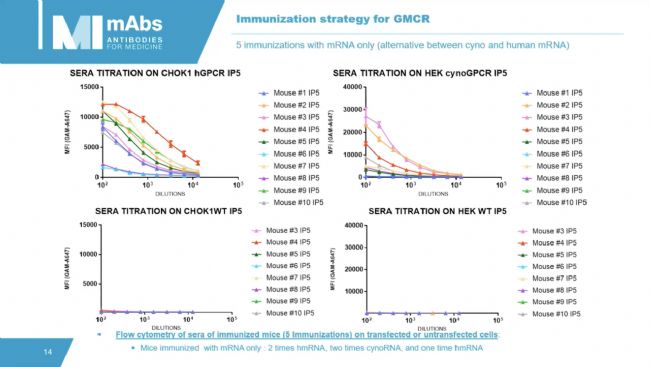 在近期的網(wǎng)絡(luò)研討會中,來自美國MImAbs的科學(xué)總監(jiān)François Romagné博士討論了針對困難靶點(diǎn)的抗體發(fā)現(xiàn)策略。他們使用mRNA免疫和Beacon單B細(xì)胞抗體發(fā)現(xiàn)平臺,加速獲得大量針對難以靶向的G蛋白偶聯(lián)受體(GPCR)和離子通道的具有分子功能多樣性的抗體。